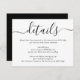 Proporcione a sus invitados los detalles importantes con esta elegante tarjeta de inclusión de boda moderna en blanco y negro con una fuente de letra moderna. Artículos coincidentes disponibles. Solicitudes personalizadas son bienvenidas.