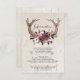 Tarjeta de sobre de boda de madera de flores boho rústico - La tarjeta de sobre presenta cuernos boho adornados con hermosas flores de color rosa, blanco y borgoña. Estas invitaciones bohemias presentan cuernos de madera con flores sobre un fondo de madera.