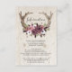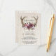 Tarjeta de sobre de boda de madera de astas boho florales rústicas - La tarjeta de sobre presenta astas boho adornadas con hermosas flores de color rosa, blanco y borgoña. Estas invitaciones bohemias presentan astas de madera con flores en un fondo de madera.