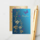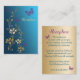 Esta verde azulada tarjeta floral de recepción azul y dorada con mariposas púrpura coincide con la invitación a la boda que se muestra a continuación. También puede personalizar que sea una tarjeta de alojamiento o de direcciones. Si hay otros elementos coincidentes que necesite, envíe su solicitud a niteowlstudio@gmail.com.