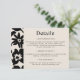 Haga una declaración con esta tarjeta de gabinete de detalles de boda floral negrita, gráfica, negra y crema. El sorprendente contraste entre el diseño floral y el moderno, es perfecto para las parejas que desean mostrar su estilo único. Establece el tono para una celebración memorable con esta inolvidable tarjeta de detalles.