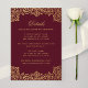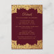 Tarjeta De Recepción Boda Detalles de la Vieja Burgundy Faux Gold
