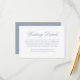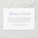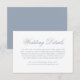 Tarjeta tradicional boda con la palabra "detalles" en una caligrafía elegante. Todo el texto está en azul polvoriento sobre un fondo blanco y puede cambiarse a cualquier color que desee haciendo clic en el botón "personalizar". Utilice estas tarjetas para proporcionar instrucciones y cualquier otro detalle importante de los bodas que sus huéspedes puedan necesitar, como alojamiento en el hotel, aparcamiento, información de transporte, etc. Este diseño clásico es perfecto para un boda formal.