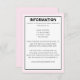 Aumente sus invitaciones de boda con nuestra moderna tarjeta de gabinete elegante, diseñada para proporcionarle a sus huéspedes detalles de alojamiento esenciales y otra información importante. Con un sofisticado efecto de capas de color rosa y blanco, esta tarjeta está bellamente enmarcada con un contorno geométrico negro llamativo, asegurando que sus detalles se comuniquen con estilo y gracia. Perfecto para añadir ese toque de elegancia adicional a su día especial, esta tarjeta de gabinete es imprescindible para cualquier boda moderno.