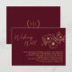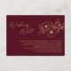 Tarjeta De Recepción Boda floral de oro de Borgoña con buenos deseos