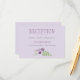 Las tarjetas de recepción de boda de moda rústica cuentan con un acento floral de lilas, lavanda, flores violetas y violeta de ciruela y hojas botánicas verdes con un toque a mano.