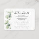 Puede personalizar fácilmente esta tarjeta de detalles del Boda Eucalyptus Greenery Foliage haciendo clic en el botón "Personalizar" para crear una tarjeta de gabinete personalizado para sus huéspedes. moderna tipografía minimalista, elegante y boda, el boda de detalles más finos, tarjeta de detalles minimalista moderna, tarjeta de detalles de boda verde oscuro, tarjeta de detalles de los bodas de color verde oscuro
