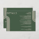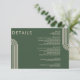 Tarjeta de detalles del Boda moderno Sage Green y Rustic Boho con arcos de almendras