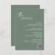 Tarjeta de gabinete de boda verde oliva / verde sabio con un diseño sencillo y mínimo, con la primera línea de la cabecera en un guión elegante y la segunda en una fuente sans serif contemporánea. Debajo, en la esquina inferior derecha, están los detalles en un diseño minimalista junto con el código QR. Si lo desea, puede eliminar el código QR en la herramienta de edición de diseño.