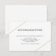 Moderna tarjeta de alojamiento geométrico boda con dos líneas doradas, una en la parte superior izquierda y otra en la parte inferior derecha sobre un fondo blanco. Un diseño minimalista que todavía se presenta como moda y elegante.