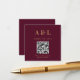 Tarjeta De Recepción Boda Monograma Código QR Borgoña Oro