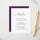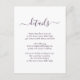 Proporcione a sus invitados los detalles importantes con esta elegante tarjeta de inclusión de boda morada moderna con una fuente de escritura moderna. Artículos coincidentes disponibles.
