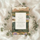 Inmerso en la belleza natural del suroeste americano, este diseño presenta un vibrante paisaje desértico enlosado con montañas escarpadas, icónicos cactus saguaro y coloridos suculentos. Los ricos tonos de tierra, las texturas audaces y los elementos pintorescos evocan el espíritu de aventura, calidez y el romance arraigado, perfecto para parejas trazadas a horizontes áridos y la magia de la hora dorada.