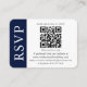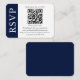 Moderna tarjeta RSVP de estilo Minimalista y simple casamiento con tu código QR. Bordes redondeados. Azul marino y blanco.