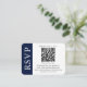 Tarjeta De Recepción Boda QR moderna RSVP Azul y Blanco