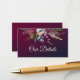 Los elementos acuarelas florales en hermosos colores, están diseñados sobre un lienzo encallado de color burdeos... con los detalles bodas en elegantes fuentes de color blanco roto. El resultado es un conjunto de diseño vibrante apropiado para motivos bodas informales y más formales. Las instrucciones de detalles y el código QR están en la parte posterior de la tarjeta. Si quieres ayuda, por favor envíame un correo electrónico o envíame un mensaje en este sitio. ¡Me encantaría ayudar! susanmingaydesigns@gmail.com