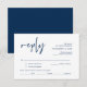 Tarjeta De Recepción Boda RSVP, con opciones de comida, fuente azul mar