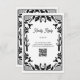 Diseño moderno de vaquero occidental con elementos dibujados a mano de cráneo de vaca, herradura, adornos florales y cactus. Diseño boda de borde floral blanco y negro con floral dibujada a mano, cactus, cráneo de vaca y herradura. Este moderno y moderno diseño de bodas de campo occidental es ideal para todas las temporadas. Un elegante rancho, granja o granero en blanco y negro con ilustraciones dibujados a mano. Un diseño de tarjetas de cerco RSVP con temática de bodas de cowboy del País Occidental con elementos modernos y elegantes. También hay disponibles invitaciones de boda coincidentes y otros artículos de papelería.