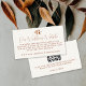 Una pequeña rama de la haya de cobre cae follaje en acuarela y un esquema de color cobre y roya decora esta elegante, sencilla, elegante y moderna tarjeta del recinto del sitio web de boda de otoño con código QR. Presenta una caligrafía de escritura moderna y elegante con abundantes florecientes. Lujoso pero sencillo, clásico pero moda, moderno pero atemporal. Una encantadora elección para un boda otoño o otoño con cobre, naranja quemado, terracota, beige, rojo, naranja y otros tonos otoño.