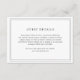 Elegante Tarjeta de Gabinete de Boda en texto negro clásico sobre un fondo blanco con la plantilla rodeada por un borde doble. El encabezado "Detalles del invitado" puede cambiarse a lo que desee y los colores del tipo de letra y del borde pueden cambiarse a cualquier color que desee haciendo clic en el botón "personalizar". Tarjeta de respuesta de estilo tradicional con un diseño limpio e intemporal perfecto para un boda formal.