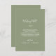 Este boda verde de hoja mínima que desea una buena tarjeta de alojamiento es perfecto para un boda boho. El diseño presenta una sencilla silueta de hojas de vegetación en un color verde polvoriento con un estilo de boho de montaña minimalista. Personalice esta tarjeta de invitación con sus nombres y un poema corto que desee bien.