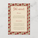 Comparte detalles importantes del boda con esta elegante tarjeta de gabinete floral Red Rose. Con un borde botánico de flores rojas rojas inspirado en la cosecha, acentuado por una tipografía de escritura elegante. Este lugar es perfecto para los bodas clásicos, románticos, del jardín o de la naturaleza. Úsalo para incluir alojamiento, direcciones, códigos de vestimenta o información del registro, manteniendo todo organizado y sobre el tema. Personalizable completo para complementar su completa suite de papel boda.