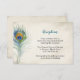Tarjeta Bohemia con pluma pavo real. Ideal para bodas de boho y otros eventos.