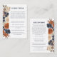 Elegantes flores de acuarela pintadas a mano y follaje enmarcan elegantemente el contenido escrito. Hermoso naranja azul marino y terracota de color beige, marrón y crema. Ambos lados de la tarjeta tienen una plantilla editable lista para recibir los detalles de la recepción de la boda y las direcciones de la ubicación del evento más la dirección URL de su boda. Tarjeta De Alojamiento Para Bodas Boho Blue Rust Floral Receptions.