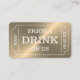 Tarjeta De Recepción Boleto Dorado Estilo "Disfruta una Bebida de Nuest
