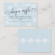 Tarjeta de tickets de Baby Shower Diaper Raffle con caligrafía manuscrita y tipo de letra sobre un fondo azul con copos de nieve para coordinar con usted invitaciones de ducha de invierno