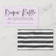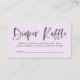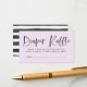 Boleto de raffile de pañales elegante y de moda para su ducha de bebé. Las palabras "rifa de pañales" se muestran en la fuente de escritura de acuarela con letras a mano de última moda contra un fondo morado claro. El diseño incluye una solicitud para traer cualquier pañal de tamaño para ganar un premio especial o añadir el texto de su personalizado. El reverso de la tarjeta del recinto tiene un diseño de banda de color de agua negro. El diseño se coordina con nuestras invitaciones de ducha de bebé de temática francesa Bonjour Bebe.