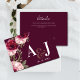 Tarjeta De Recepción Bonito Monograma Borgoña Rubor Boda Floral Rosa