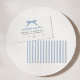 Crea una escapada de ducha parisina con esta elegante tarjeta de envoltura de canapé de pañales de ducha de inspiración francesa, la adición perfecta a tus invitaciones para duchas de bebé. Con suaves tonos de rubor, arcos azules y un guión elegante, este diseño se combina perfectamente con cualquier celebración parisina o temática de la coqueta. En la parte trasera se aprecia una combinación de rayas azules y crema para un estilo boutique pulido con un toque de coqueta.