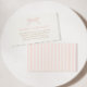 Crea una escapada de ducha parisina con esta elegante tarjeta de alojamiento para bebés de inspiración francesa, la adición perfecta a tus invitaciones para duchas de bebé. Con sus suaves tonos ruidosos, sus arcos rosados y su elegante escritura, este diseño combina a la perfección con cualquier celebración parisina o temática de coqueta. En la parte trasera se aprecia una combinación de rayas rosas y cremas para un estilo boutique pulido con un toque de coqueta.
