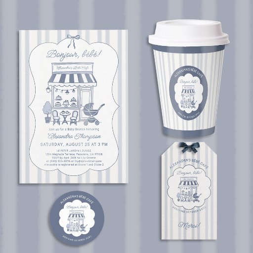 Coffee Brunch Baby Shower Theme Hand-Drawn BlueDiseñado por Christine Ellis