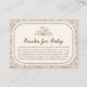 Invite guests to bring a book instead of a card with this charming “Books for Baby” insert. Designed in warm brown tones with a hand-drawn book illustration and soft floral ornament background, this card features a handwritten style font for a cozy, rustic feel. It’s a beautiful fit for literary and “a new chapter begins” themed celebrations, and a thoughtful way to help build a meaningful little library filled with love and well wishes.