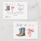 Elegante Qué será el bebé botes o arcos temática Género Reveal Diaper Raffle Tarjeta de juego con agua color rosa arco y botas de vaquero azules. Productos coincidentes que se pueden encontrar en la colección.