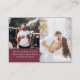 Foto personalizado Código QR en línea rsvp y/o tarjeta de gabinete del sitio web boda. Sencillo diseño clásico y elegante en burdeos para coordinarse con los colores bodas (por favor, navegue por mi tienda en busca de colores alternativos o haga clic en "personalizar más lejos" y cambie el color de fondo para adaptarlo). Facilite a sus huéspedes el escaneo del código qr para acceder al sitio web de su boda o mantener la dirección del sitio web a mano para que puedan ver RSVP en línea y otra información, como la ubicación del lugar, el orden de los eventos, el enlace a su registro de regalos o el deseo, código de vestimenta, transporte, etc. La plantilla está lista para que agregue el código qr de su personalizado, los nombres de foto, novia y novio, la fecha de boda y el texto personalizado en la parte delantera y posterior. Si no desea agregar texto adicional, deje los campos de plantilla en blanco.