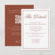 Añada un toque de elegancia moderna a su suite boda con esta elegante tarjeta de respuesta RSVP en un impresionante tema de color azul polvoriento. Esta tarjeta, que cuenta con un guión caligráfico elegante y un diseño tipográfico clásico, combina la sofisticación atemporal con el estilo contemporáneo. El código QR incluido para los detalles del boda permite a los huéspedes acceder fácilmente a su sitio web boda en línea y ver habitaciones sencillas. Perfecto como un elegante material de escritorio, este diseño refleja su estilo formal y sofisticado, manteniendo todo sin esfuerzo.