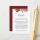 Utilice esta elegante tarjeta de inserción de invitación para añadir cualquier detalle adicional que desee. Posibilidad de añadir cualquier título y mensaje utilizando los cuadros de texto de plantilla proporcionados e incluso la opción de realizar cambios en el posicionamiento, tamaño o estilo del texto seleccionando "editar usando la herramienta de diseño". Diseño con detalles modernos de caligrafía y un delicado borde floral de acuarela en una hermosa mezcla de rosa, champán, melocotón y amarillo de color burdeos, rubio y polvoriento. La tarjeta está de vuelta en un tono burdeos atractivo.