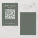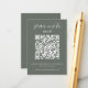 Haga que el proceso RSVP de su boda sea fluido, con nuestra tarjeta de código QR RSVP. Esta tarjeta de personalizable cuenta con letras blancas modernas con un fondo verde forestal profundo. El diseño incluye un área de texto de personalizable y un espacio para generar un código QR único para que los huéspedes puedan responder fácilmente a RSVP a través de sus smartphones. Vaya a la opción "personalizar", agregue la dirección URL de su sitio web boda al área proporcionada, y se generará un código QR en el diseño sólo para usted. Haga que su día especial sea aún más memorable con esta tarjeta de gabinete boda funcional y de moda.