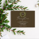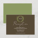 Wedding collection with earth tones of green and dark brown. A gold geometric monogram crest surrounded by botanical leaves.