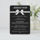 Elegante tarjeta de gabinete en blanco y negro que ofrece detalles importantes para su día de boda, incluyendo alojamiento, código de vestimenta e información de RSVP. Compañero perfecto a su suite Save the Date o de invitación.