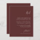 Tarjeta De Recepción Burgundy Elegant Wedding Details Enclosure Card
