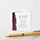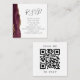 El borde izquierdo de esta elegante y moderna tarjeta del sitio web del boda incluye una cuña de color burdeos adornada con un purpurina de oro falso. El título aparece en el guión de escritura a mano gris carbón, con el texto de personalizable debajo. Cargue su sitio web boda código QR para reemplazar la imagen de ejemplo en el reverso, enmarcado por las palabras "escanéenme a RSVP".