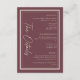 Tarjeta De Recepción Burgundy Wine Minimalist Frame Wedding