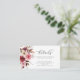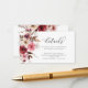 Maroon fall Flores Laves Burgundy Boda Detalles Tarjeta de Gabinete. Floral boda tarjeta de detalles con flores de cascada pintadas a mano y hojas en tonos burdeos, marrón, marrón, rosa y beige con escritura moderna de caligrafía. Tarjeta de detalles del boda de personalizable completo. Añade los detalles de tu boda, cambia los tipos de letra, coloca las flores y los colores en la parte delantera y trasera de la tarjeta.