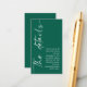 Modern Calligraphy QR Code Emerald Green Boda Una opción conveniente para que sus invitados puedan ver toda la información que necesitan en su sitio web boda escaneando un código QR. Los detalles se encuentran en una caligrafía elegante y seleccionada, girada a la izquierda, con su mensaje a la derecha. Personaliza fácilmente el resto del texto a tus propios detalles y reemplaza la url de ejemplo con la de tu propia URL de sitio web y tu código QR se generará automáticamente.