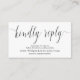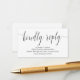 Esta es la tarjeta RSVP de Bodas Modernas y Hermosas, en caligrafía negra, para la respuesta de la invitación a la boda, o tarjeta del recinto de la celebración del fiesta. Puede cambiar los colores del tipo de letra y agregar los detalles del boda utilizando la herramienta de edición de texto Zazzle. Teesha Derrick