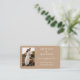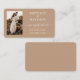 Tarjeta de inserción de registro de boda con caligrafía moderna y elegante. Foto en la parte frontal. Fondo beige marrón claro.